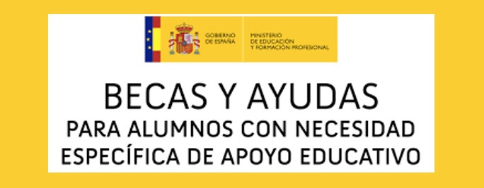 El Ministerio de Educación y Formación Profesional convoca anualmente ayudas destinadas a colaborar en los gastos que la educación del alumnado con necesidad específica de apoyo educativo genera para sus familias.  Para el curso académico 2023-2024 ha dictado la Resolución de 20 de abril de 2023, por la que se convocan ayudas para alumnos con necesidad específica de apoyo educativo.