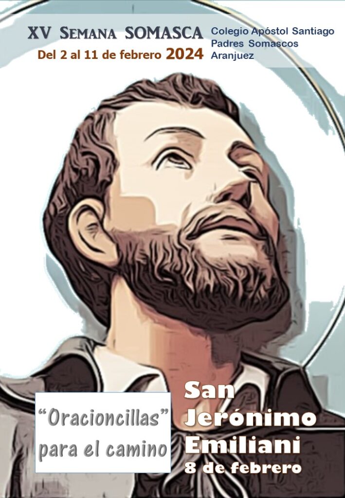 El Colegio Apóstol Santiago celebra con toda la comunidad educativa la festividad de san Jerónimo Emiliani (8 de febrero), fundador de los Padres Somascos y patrón del Colegio Apóstol Santiago. En esta SEMANA SOMASCA, del 2 a al 11 de febrero, proponemos actividades, por edades y grupos, orientadas a conocer la vida, la obra y sobre todo, el testimonio de Jerónimo Emiliani y de los Padres Somascos, con la colaboración de la comunidad de religiosos, del profesorado, personal del centro y AMPA: concursos, cómics, canciones, vídeos, teatrillos, eucaristías… No olvidamos a nuestros queridos abuelos (con su misa y chocolatada). El viernes 10 celebraremos la fiesta de san Jerónimo con distintas propuestas con todos los alumnos: oraciones, eucaristías, “pisco”, yincanas, deportes… Nuestros “reyes” y acompañantes de Bachillerato representarán a todo el alumnado. A su vez, toda la comunidad cristiana podrá compartir momentos de oración (triduo de san Jerónimo) y las eucaristías solemnes en honor a san Jerónimo, con la bendición del pan.