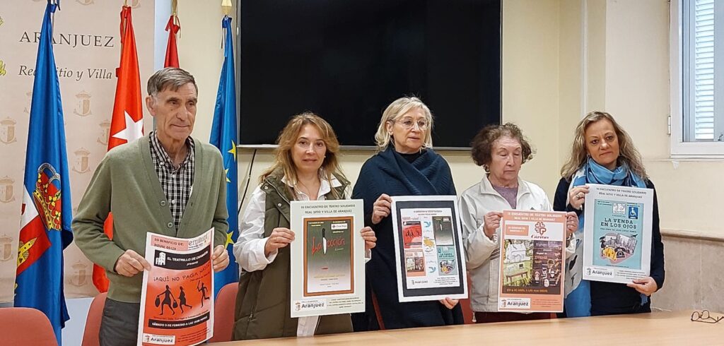 La Alcaldesa de Aranjuez, María José Martínez de la Fuente, ha presentado en rueda de prensa el “IX Encuentro de Teatro Solidario Real Sitio y Villa de Aranjuez”, en el que cada una de las cuatro compañías de teatro amateur que conforman el programa destinará la recaudación de su actuación a una de las siguientes entidades sociales: ONG Emiliani Fundación Somasca, Asamblea Local Cruz Roja Aranjuez, Cáritas Aranjuez y Asociación de Minusválidos Físicos de Aranjuez. Las cuatro funciones tendrán lugar en el Auditorio Joaquín Rodrigo del C.C Isabel de Farnesio, donde también se podrán adquirir las entradas, con un precio de 5 euros.