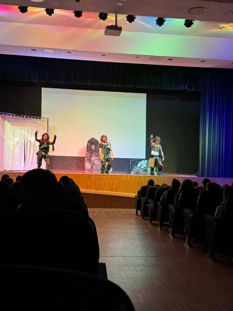 La semana pasada, los alumnos de 5º y 6º de primaria asistimos a una obra de teatro centrada en el tema del respeto. La obra presentaba una aventura única en la que un grupo de personajes del futuro, que eran alumnos muy traviesos, vivían en un futuro en el que habíamos vuelto a la prehistoria pero con tecnología avanzada. Para poder ir al viaje de fin de curso, debían superar una serie de pruebas que les enseñaban la importancia del respeto hacia los demás.