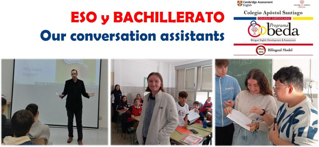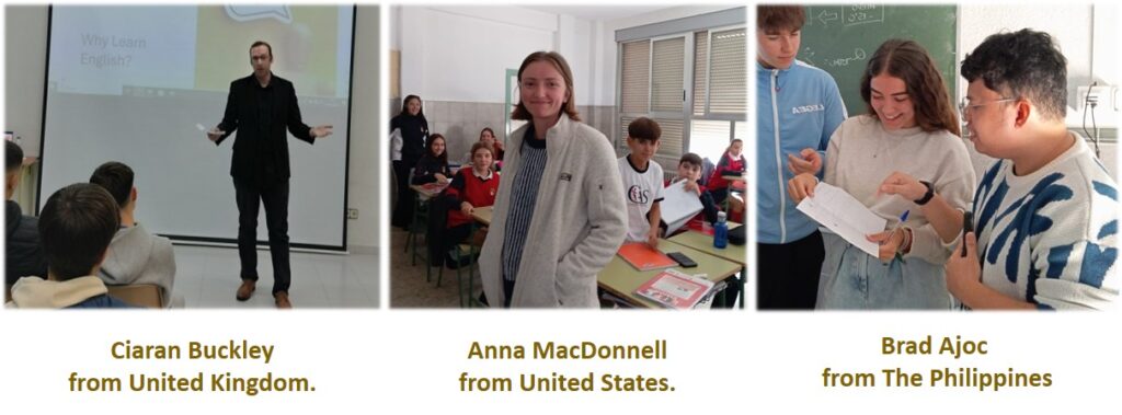 Hi again! The English Department of Secondary Education and Bachillerato would like you to meet our conversation assistants. Three/four times a week our students have got the opportunity to listen to native speakers and participate in dynamic classes with the aim of gaining confidence and improving their communicative skills while they listen to different accents and learn other cultures and customs. Here you can see some pictures so that you can meet them.