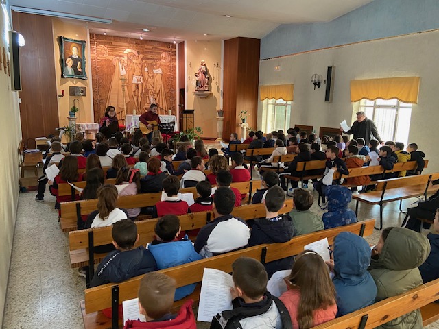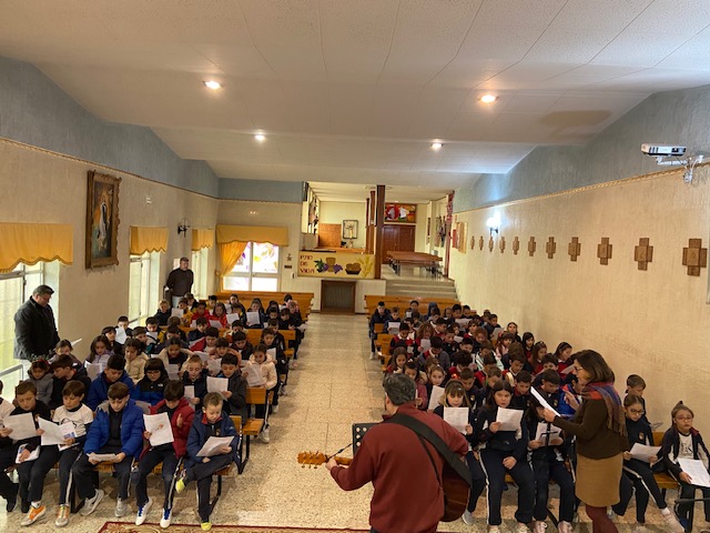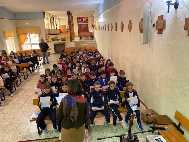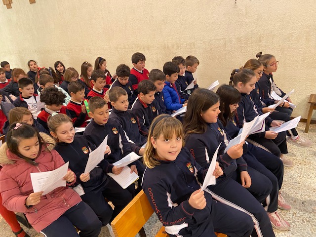 Reunidos en la capilla del colegio, los niños han cantado villancicos tradicionales, llenando el espacio de música y entusiasmo, mientras recordaban la importancia de este tiempo de Adviento. Cada canción fue una expresión de su ilusión y del deseo de recibir a Jesús con el corazón abierto.