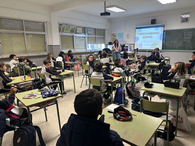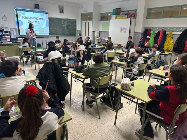 La sesión comenzó con un diálogo sobre los secretos y el acoso escolar. Se debatió sobre su significado, cómo nos hace sentir y qué podemos hacer cuando presenciamos una situación injusta. Esta reflexión inicial sirvió como base para comprender la importancia del respeto y el apoyo mutuo.