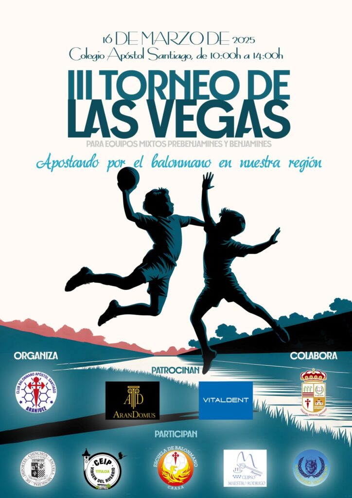 EL CLUB BALONMANO APÓSTOL SANTIAGO DE ARANJUEZ ORGANIZA LA TERCERA EDICION DEL TORNEO DE LAS VEGAS. SERÁ EL SÁBADO 16 DE MARZO, EN LAS INSTALACIONES DEL COLEGIO APOSTOL SANTIAGO, DESDE LAS 10 HASTA LAS 14 HORAS.