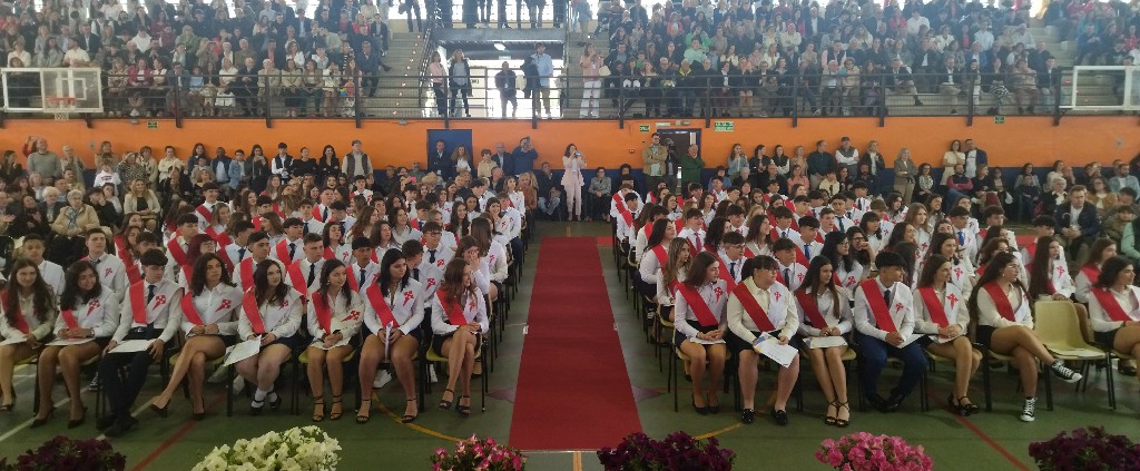 El pasado sábado 10 de mayo celebramos el Acto de Graduación de los alumnos de 4º de ESO en nuestro Pabellón Polideportivo, especialmente acondicionado para la ocasión. Tras la tradicional foto de grupo, dio comienzo una emotiva y entrañable ceremonia en la que nuestros estudiantes, acompañados por sus tutores, profesores y familias, recibieron el reconocimiento simbólico al cierre de esta etapa educativa.