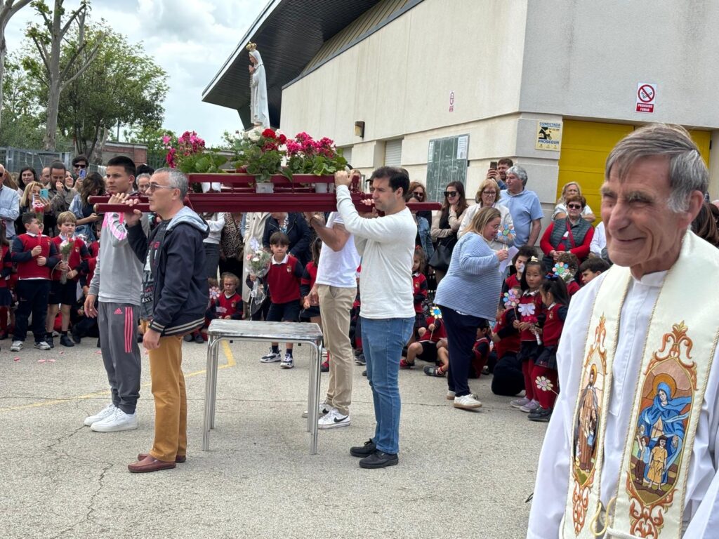 En Ed. Infantil, coincidiendo con el día de san Isidro, celebramos la ya tradicional procesión de la Virgen de Fátima. Hemos vivido una jornada preciosa, compartiendo momentos con las familias, que siempre están dispuestos a venir a cole a participar en cada una de las actividades que proponemos. Cada uno de los alumnos hizo una flor para llevarla durante todo el recorrido hasta la pradera de la Capilla Bizantina, en la que los niños expresaron deseos y agradecieron a la Virgen su cuidado. También se llenó a la Virgen de ramos de flores naturales que fueron trayendo los niños, con los que se rellena el altar que tenemos en la entrada del colegio.