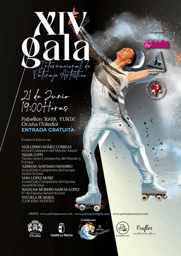 El próximo sábado 21 de Junio (19.00) el Pabellón «Rafa Yunta» de Ocaña (Toledo) acogerá la XIV Gala Internacional de Patinaje Artístico organizada conjuntamente por el Club Patinaje Ocaña, Club Patinaje Ontígola y Escuela de Patinaje C.A.S Aranjuez, con la colaboración del Exmo. Ayuntamiento de Ocaña.