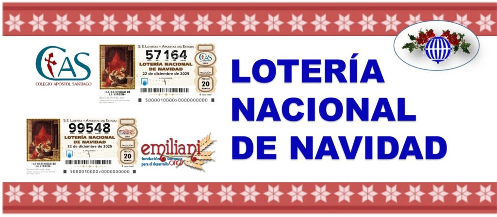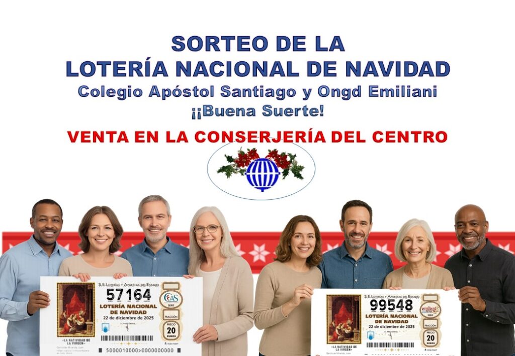 El Colegio Apóstol Santiago y la ONGd Emiliani continúan un año más con la tradicional venta de Lotería del Sorteo Extraordinario de Navidad, que se celebrará el 22 de diciembre de 2025. El coste de los décimos incluye un donativo de 4 €, cuya recaudación se destina íntegramente a apoyar los programas y servicios de las obras sociales y educativas somascas. Gracias a tu colaboración, seguimos construyendo oportunidades para quienes más lo necesitan.