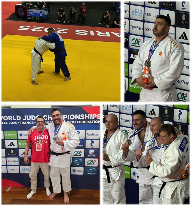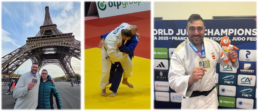 Nuestro profesor de judo de la Escuela de Judo Apóstol Santiago, el deportista de Aranjuez Ángel Parra, once veces campeón de España absoluto, se ha proclamado campeón del mundo veterano en la categoría M3 +100 kg durante el Campeonato Mundial de Judo de Veteranos 2025, celebrado en París.