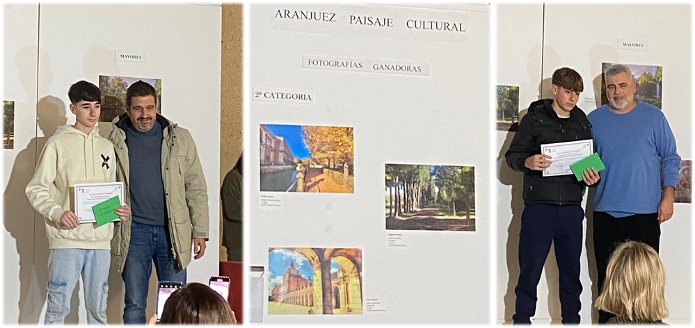 El pasado lunes 15 de diciembre, los alumnos Sergio Fernández Gívica y Álvaro Figueruelo Constanza fueron reconocidos con el primer y tercer premio, respectivamente, en la segunda categoría. El acto de entrega de premios contó con la presencia del Alcalde de Aranjuez y de la Directora de la Fundación Aranjuez Paisaje Cultural.