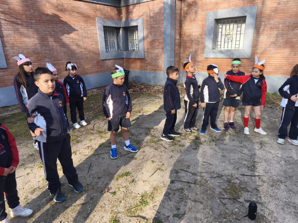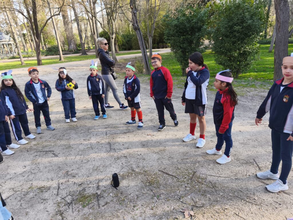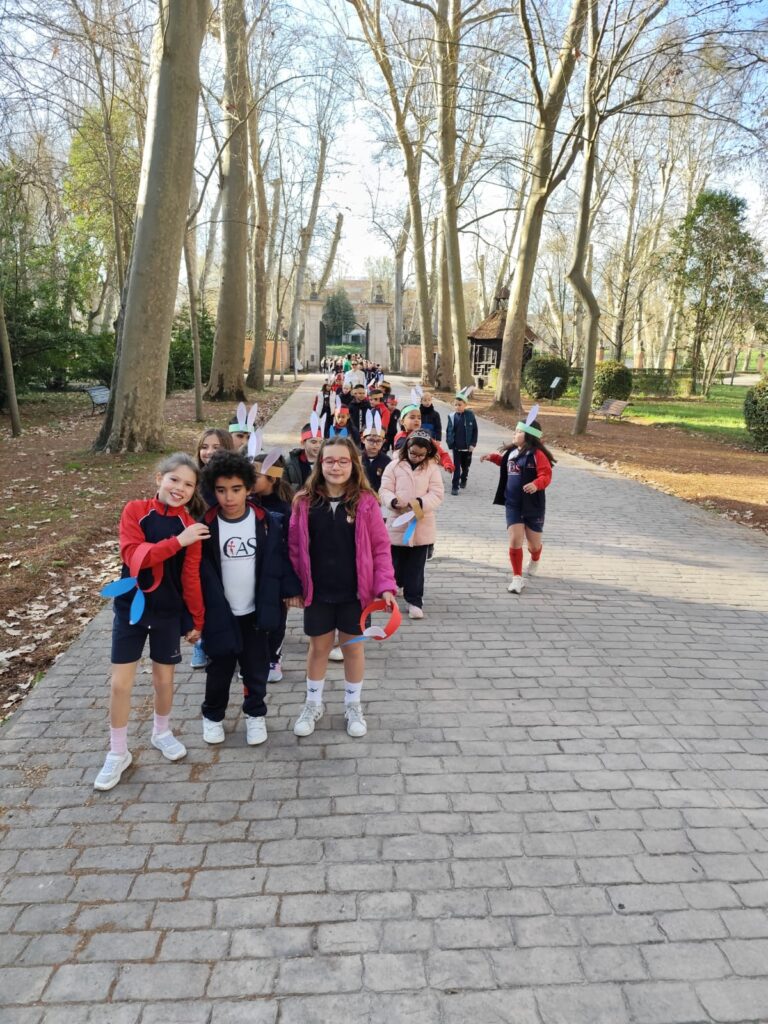 Los alumnos de Educación Primaria vivieron una jornada inolvidable con motivo de la celebración de la Pascua. Ataviados con divertidos disfraces de conejos, los niños y niñas se trasladaron al Jardín del Príncipe para participar en una actividad muy especial al aire libre.