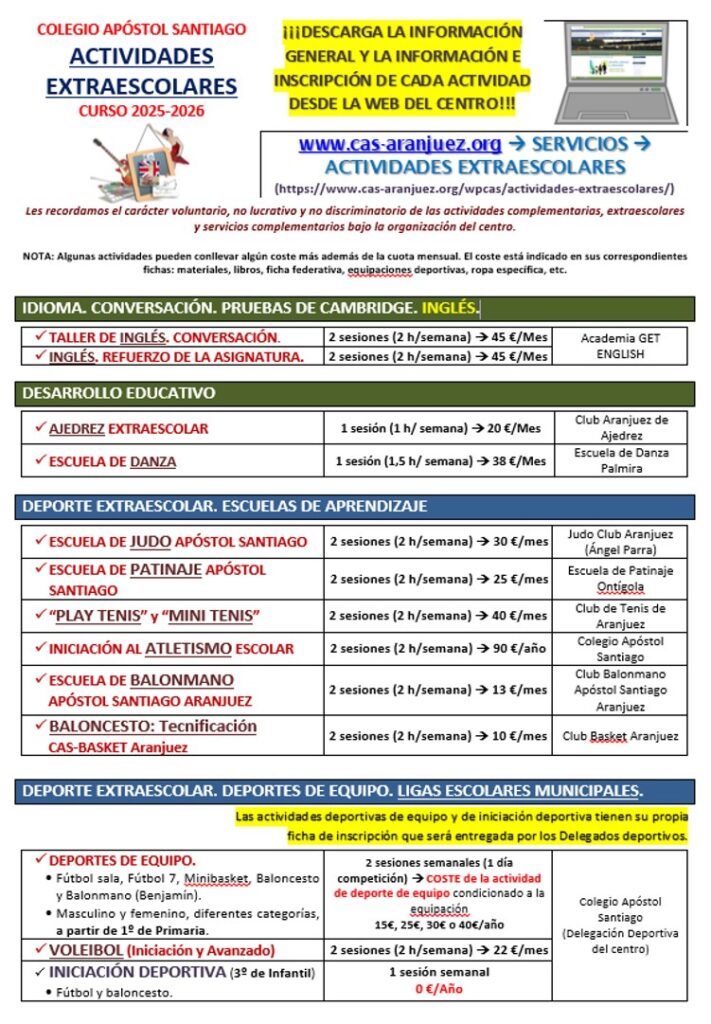 • Información general sobre ACTIVIDADES EXTRAESCOLARES, Curso 2025-2026. AQUÍ